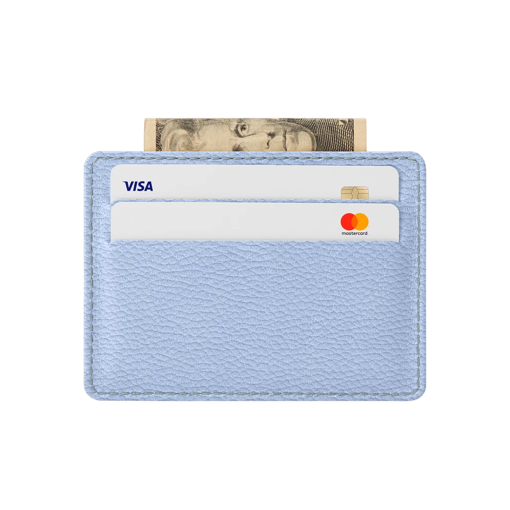 エブリデーカードケース(4枚) - ブルーグレー - シボ付き革
