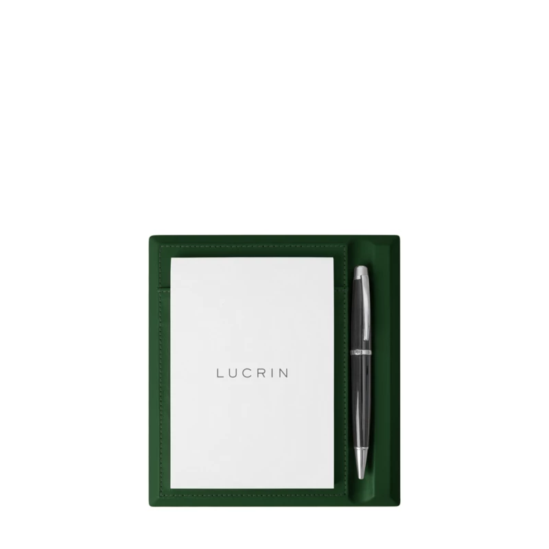 LUCRIN Genevaのノートパッド&ペンホルダーでオフィスを華やかに飾りましょう。A6サイズのメモ帳がぴったり入るポケットがあり、重要なメモを書き留めるのに便利です。付属のペンホルダーもあり便利。安定感のある木製のベースを高級レザーで包み、洗練された雰囲気に仕上げています。すっきりとした整頓を心がけ、突然の会議にも対応できるようにしましょう。ベースに使用された柔らかいマイクロファイバーのライニングがしっかりと本体を固定します。素材の色と種類を選んで、A6メモ帳をカスタマイズしましょう。A6メモ帳と一緒にお届けします。