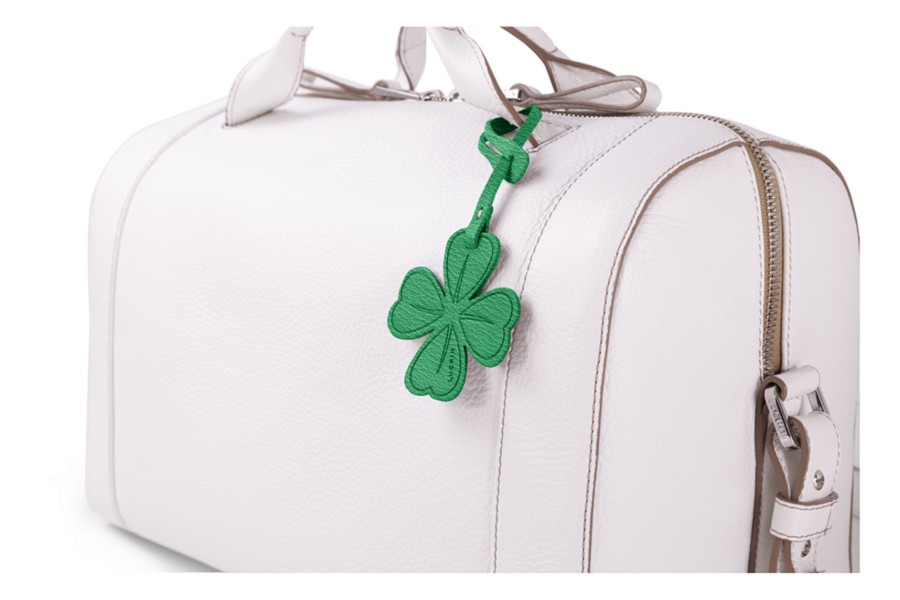 世界的に有名な幸福のシンボル、四つ葉のクローバー。革製のラッキーチャームですのでハンドバック等お好きなアイテムにプラスしてお使いいただけます。バラエティー豊かな色の中からお好きな色をお選びください。ストラップ長さ(使用可能部分): 10 cm : 10 cm クローバーサイズ: 7 x 7 cm