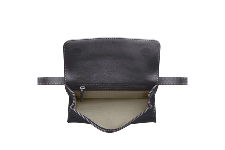 フルグレンレザーを使用したウエストポーチ。内側:フラットポケット1つ。ウエスト部分のストラップは長さ調節が可能。マグネットボタン付きのフラップ開閉式。サイズ:100x150x50 mmベルトの長さ:最長145cm