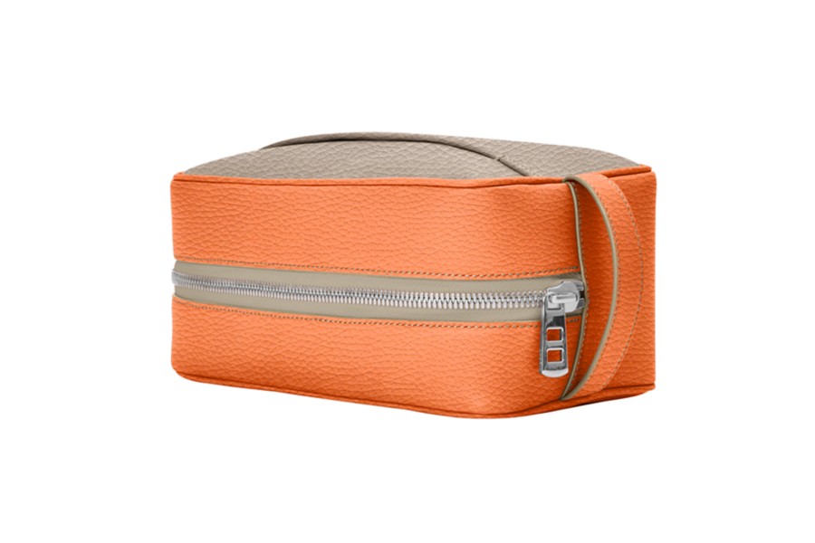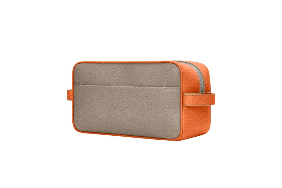 アメニティバッグ (25 x 14.5 x 11.5 cm) - Mink-Orange - Granulated Leather