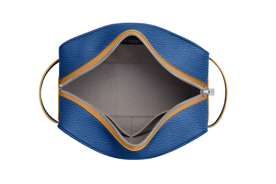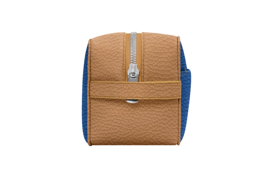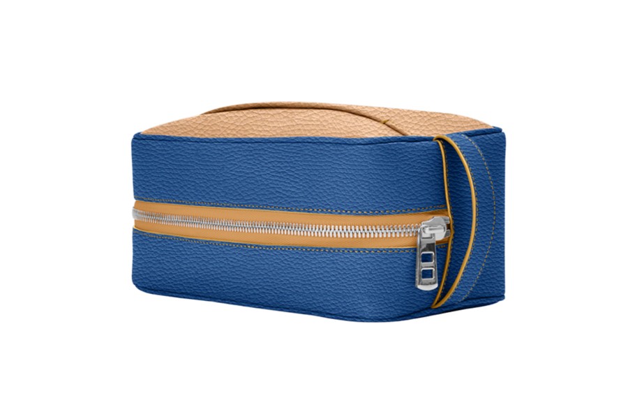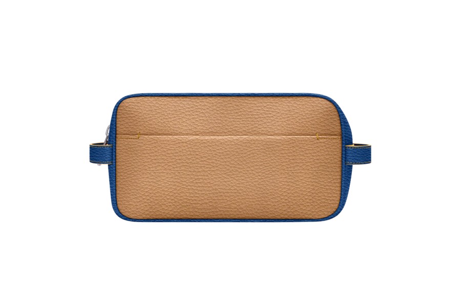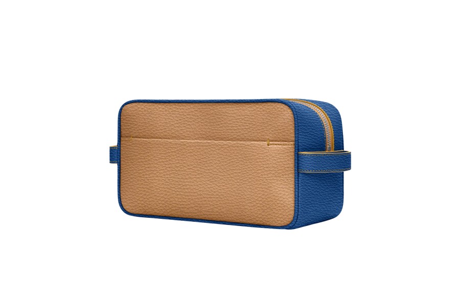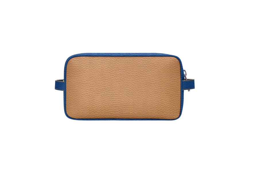 アメニティバッグ (25 x 14.5 x 11.5 cm) - Natural-Royal Blue - Granulated Leather