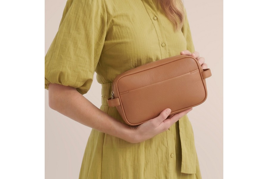 Lucrinのデザイナーズコレクションから、エレガントかつ高級感溢れるレザー製アメニティバッグをご紹介いたします。ソフトレザーを使用した大容量サイズで、旅行に必要なアメニティグッズをすべて詰め込めます。外側:シボ付きカーフレザー 両サイドにレザー製のハンドル各1本 レザー加工を施したコットンバッグに入れてのお届けになります 内側:ミンク色のコットン素材 ファスナー付きポケット1つ(17 x 13 cm) フラットポケット2つ(12 x 9 cm) サイズ:25 x 14.3 x 11.5