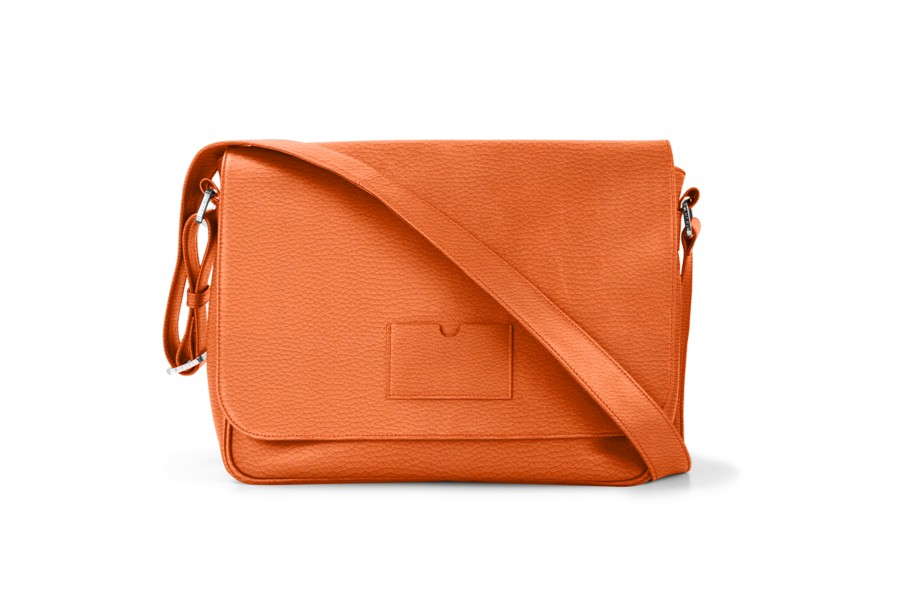 Great to carry everyday, this messenger bag comes with a large magnetised flap closure, rounded shape and soft conception. Two magnets help the flap of the mailbag snap shut and this is very practical when you are on the move. The cotton lining plus the zipped flat pocket inside the sling bag ensure that you can keep in your daily essentials, such as your phone, wallet and keys. The relatively large volume of this shoulder bag allows you to slip in your doc holder, notepad, copybook or a laptop of up to 17 inch. You can customise this leather crossbody bag with your initials for instance.