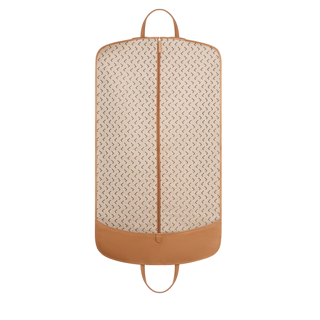 旅をエレガントにするのは細部から。このプレミアムファブリック製ガーメントバッグは、どこへ行っても衣服の美しいシルエットを保ちます。上質なファブリックに洗練されたレザーのトリムをあしらい、出張やフォーマルな旅をスムーズな体験に変えます。 控えめなスロットとスナップボタンがハンガーをしっかり固定し、服がそのままの状態で目的地に届くように守ります。二つ折り構造と巧みに配置されたハンドルにより、手持ちでもスーツケースに掛けても快適に持ち運べます。この折り畳み式のガーメントバッグは、プロフェッショナルや頻繁に旅をする方に信頼されるパートナーです。 パーソナライズによって、このトラベルガーメントバッグはあなただけのものに。カラーを選び、控えめなモノグラムを添えて仕上げてください。 プレミアムファブリック製ガーメントバッグをカスタマイズし、あなただけの旅の伴侶に。