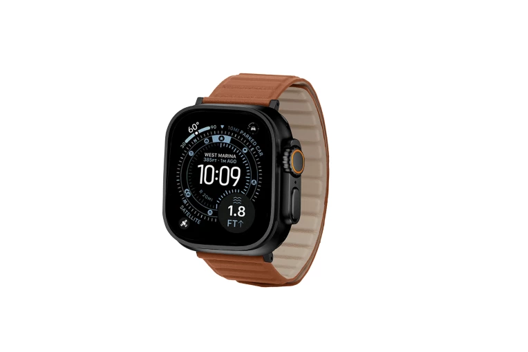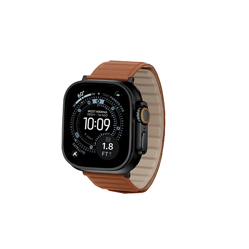 この高品質な本革製バンドは、しっかりとした装着感と快適さが特徴です。スマートに折りたたまれるマグネットで本体をしっかりと固定します。黒のアダプターとマグネットバンドがApple Watch Ultraと調和し、控えめなエレガンスを演出します。レザーから磁気クロージャーの精度に至るまで、すべてのディテールが洗練された美しいデザインです。