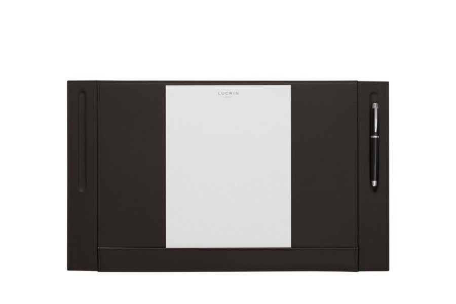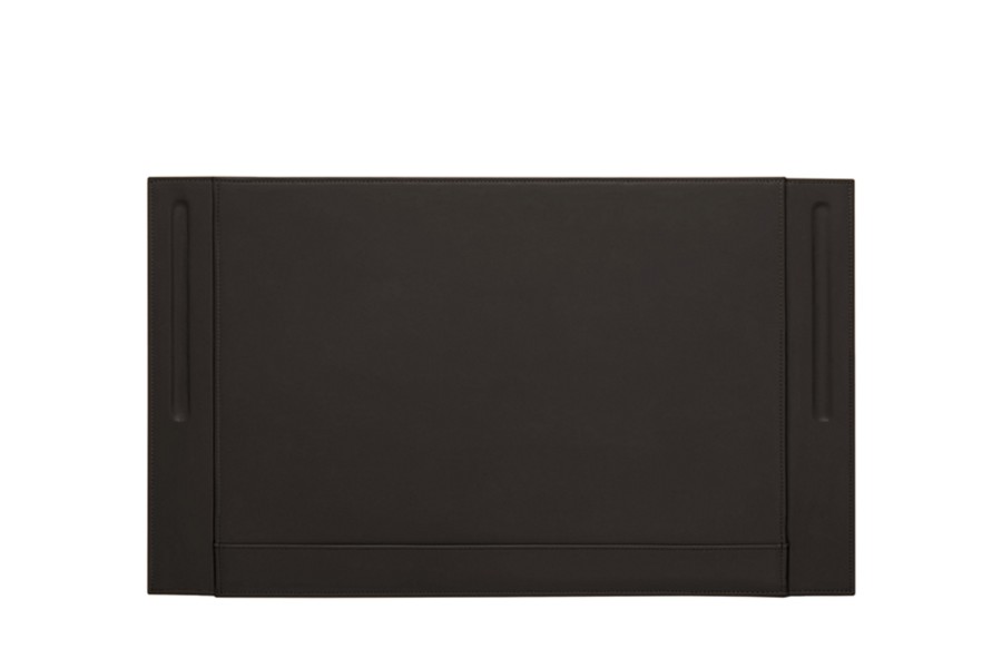 このエレガントなデスクパッドには2ヶ所に凹みがあり、それぞれに一本ずつペンを収納することができます。上質な本革を使用し、下面を美しいマイクロファイバー素材で加工してあるため、テーブルの表面を傷つけることなく、安心してご使用いただけます。上品な見た目と豊富なカラーバリエーションで、オフィス空間にエレガントな趣を与えてくれる逸品です。