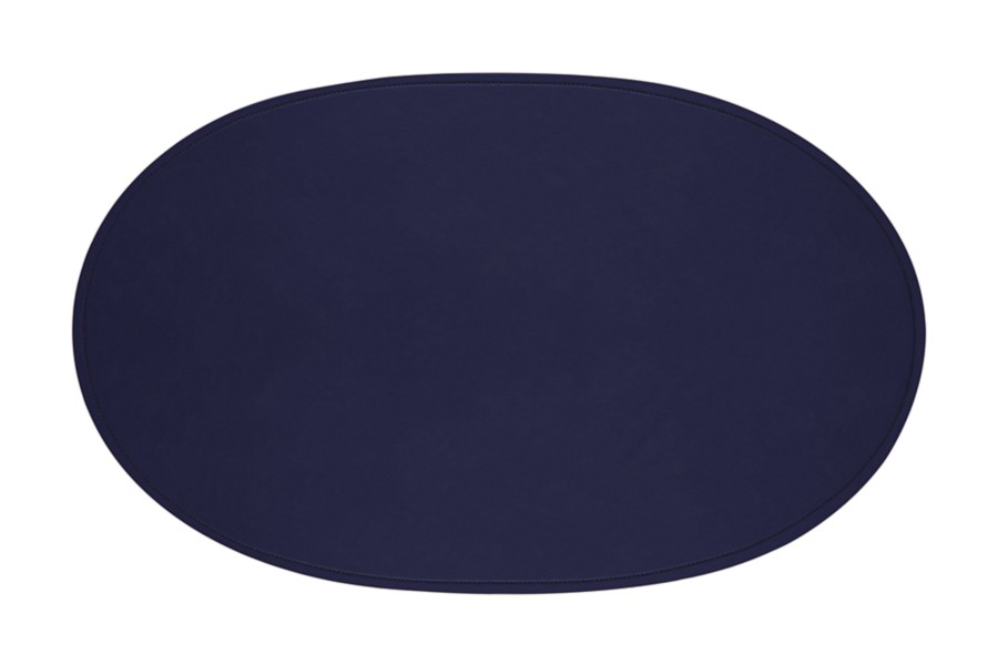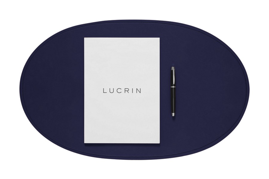 Large oval desk pad 65 x 40 cm - Navy Blue - Smooth Leather