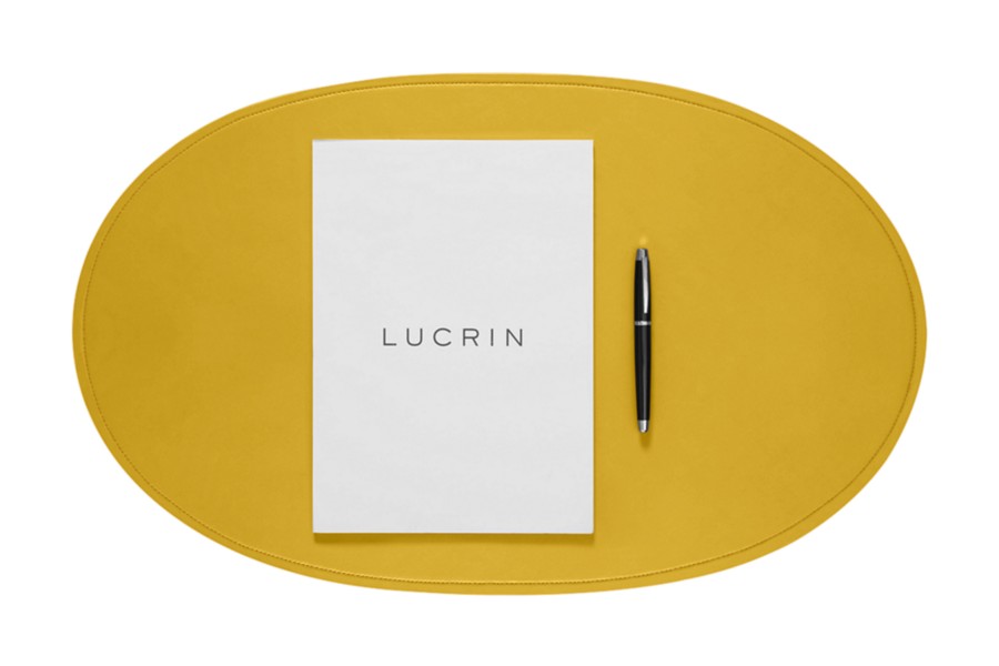 Large oval desk pad 65 x 40 cm - Sun Yellow - Smooth Leather