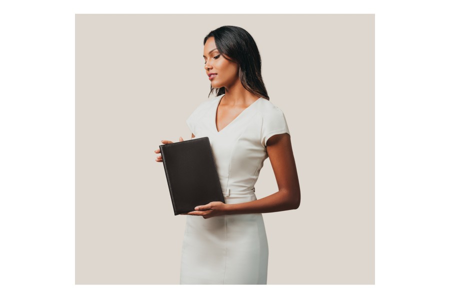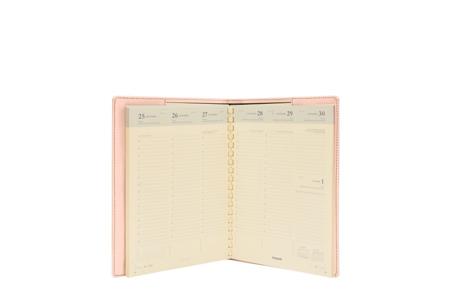 Leather simple refillable desk diary 2019. Supplied with a Brepols Timing spiral-bound, week-on-two pages weekly planner.