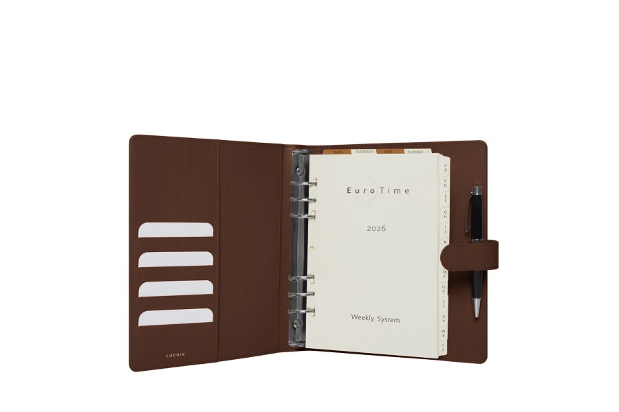 大判サイズの2019年版レザー製オーガナイザー。エレガントで実用性に優れたアイテムです。内側にはクレジットカード用のポケットが3つ付いており、週間予定表は6カ国の言語に対応しています。オーガナイザーには1月始まりの週間予定表(見開き1ページに一週間分)、電話帳、メモ帳を収録。リフィル(ROS1064)はウェブサイトから別途購入可能です。