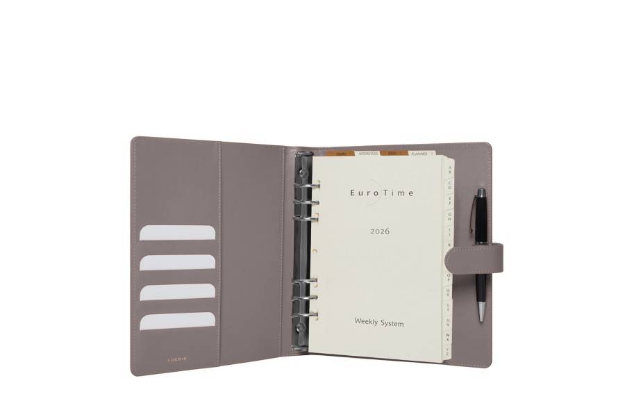 大判サイズの2019年版レザー製オーガナイザー。エレガントで実用性に優れたアイテムです。内側にはクレジットカード用のポケットが3つ付いており、週間予定表は6カ国の言語に対応しています。オーガナイザーには1月始まりの週間予定表(見開き1ページに一週間分)、電話帳、メモ帳を収録。リフィル(ROS1064)はウェブサイトから別途購入可能です。