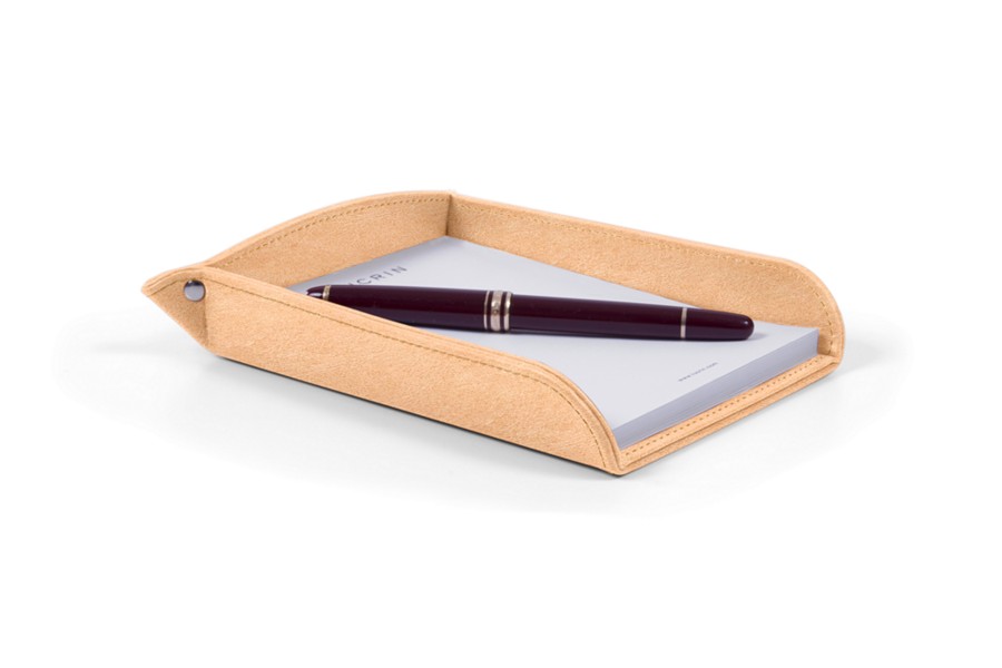 堅木の土台を最高級の本革で加工したA6サイズの処方箋ホルダーです。A6サイズの処方箋を保管するトレイとして医師の間で大変人気の高いアイテムです。また、高級ホテルのフロントなどで請求書や領収書を提示する場面でも多くご活用いただいています。豊富なカラーバリエーションをご用意しているほか、イニシャルや会社のロゴなどの刻印にも対応しています。本製品にはLUCRINのA6サイズのメモ帳が付属します。