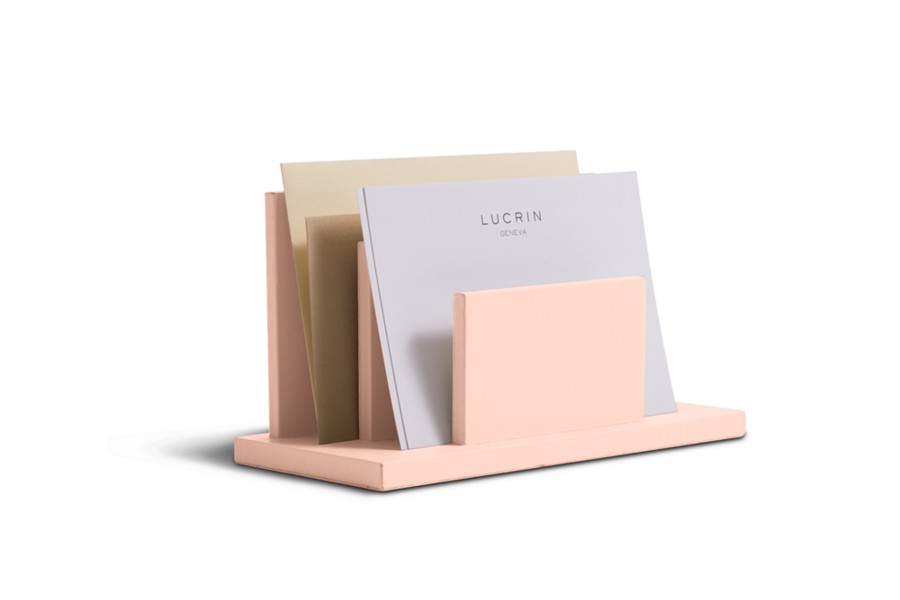 デスクアイテムとして大活躍のレター・封筒用ホルダーです。木製の土台をレザー張りに仕上げたエレガントかつ使い勝手の良いアイテムで、手紙の仕分け作業を楽にし、デスク周りの整頓に役立ちます。デスクパッドやペン立てなどのレザーアイテムと組み合わせて、あなただけのオリジナルのデスクセットを作りましょう。