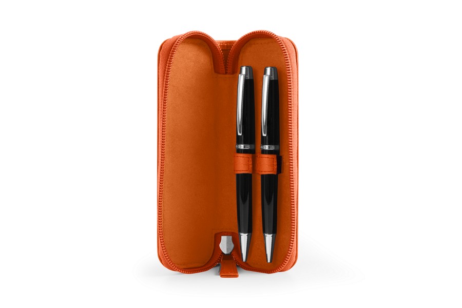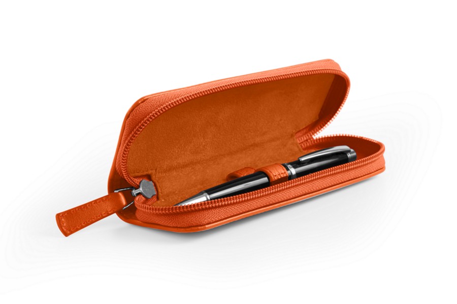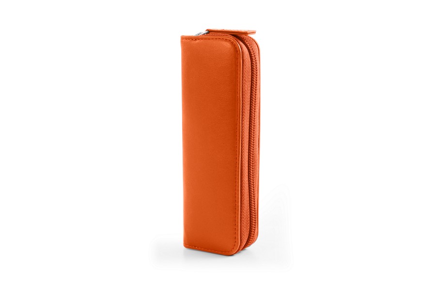 ファスナー付き 2本用 ペンケース - Orange - Smooth Leather