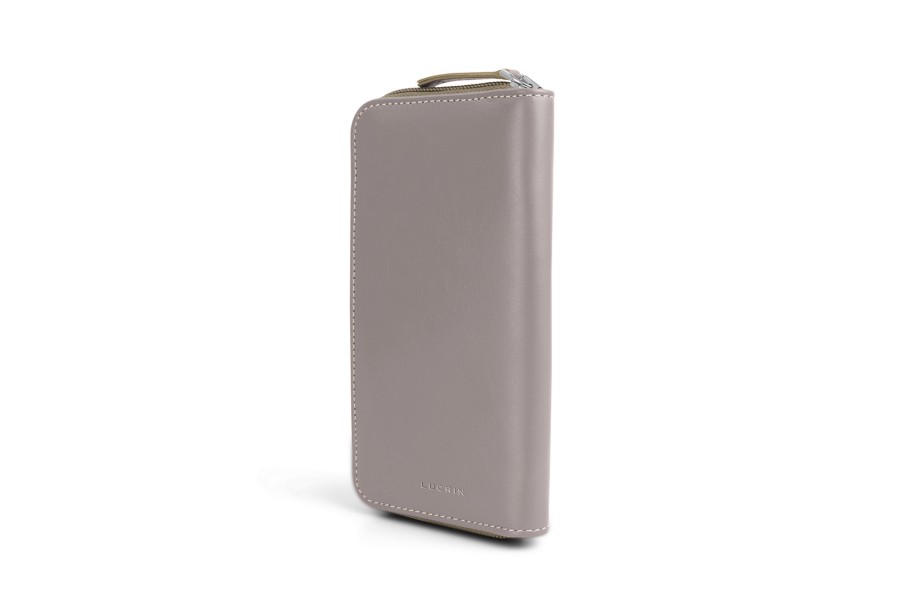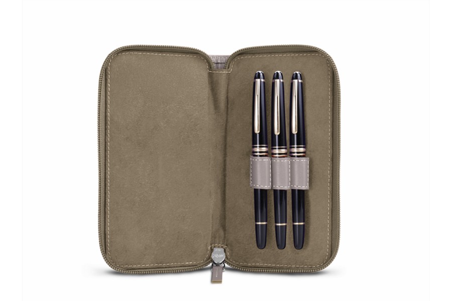 ファスナー付き 3本用 ペンケース - Light Taupe - Smooth Leather