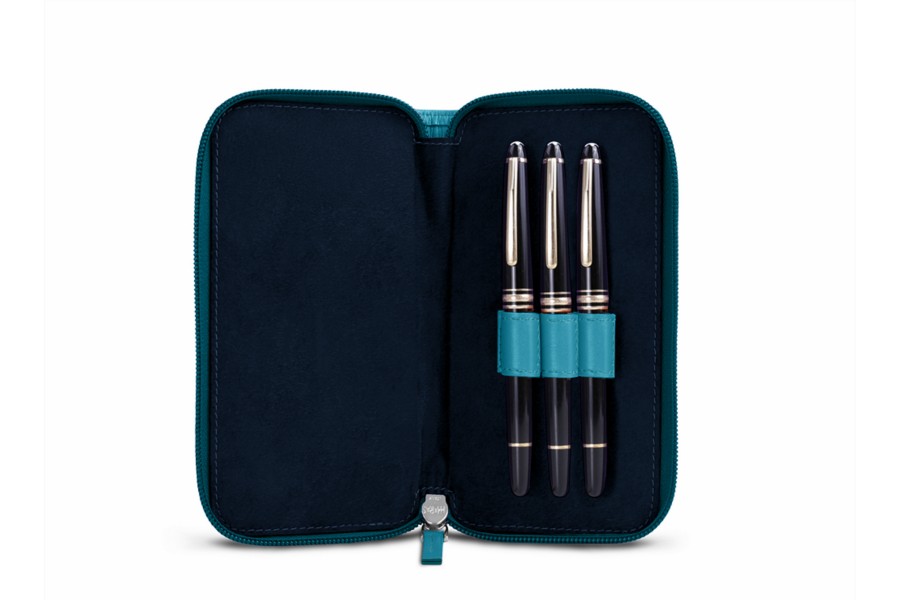 ファスナー付き 3本用 ペンケース - Turquoise - Smooth Leather