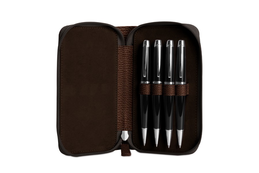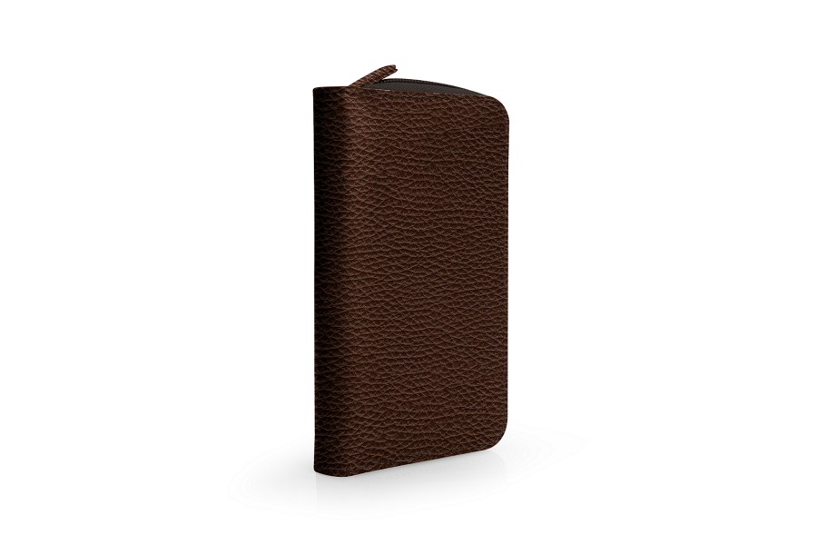 ファスナー付き 4本用 ペンケース - Dark Brown - Granulated Leather
