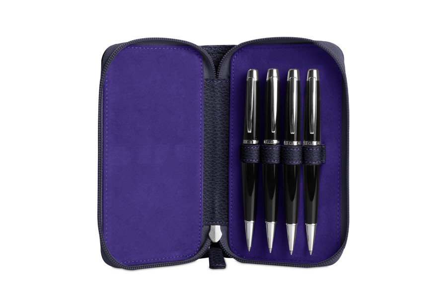 ペンを4本まで収納できる、ファスナー付きのエレガントなペンケースです。ペンホルダーは伸長性があるため、ペンの太さを問わずしっかりと収納できます。ペンの長さ:最長14.5 cmまで。