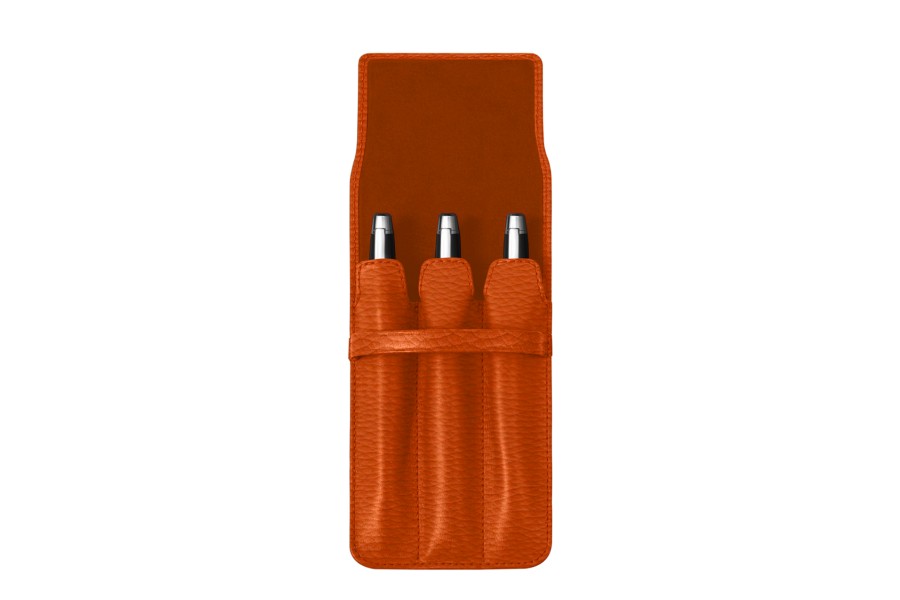 3本用 ペンケース - Orange - Granulated Leather