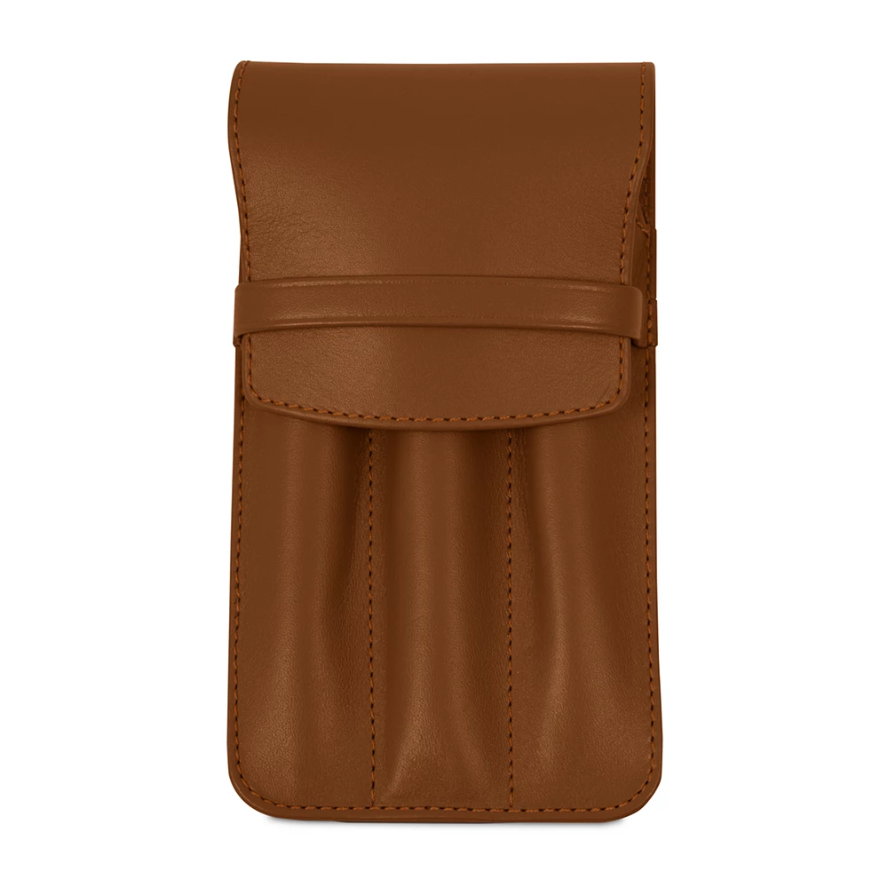 大切なペンを保管するための特別なケースをお探しの方に。このレザー製ペンケース(3本用)は、大切なペンをしっかりと保護しながら、高級感を添えてくれるアイテムです。エレガントかつ実用的なデザインで、ペンの出し入れも簡単です。フラップ部分をループに通すことで開閉できるデザインと、裏地に使用した最高級のマイクロファイバー素材によって、収納したペンをしっかりと保護します。Mont BlancやParker、Watermanなどの高級ブランド筆記具の愛用者から広く親しまれているレザー製ペンケースです。
