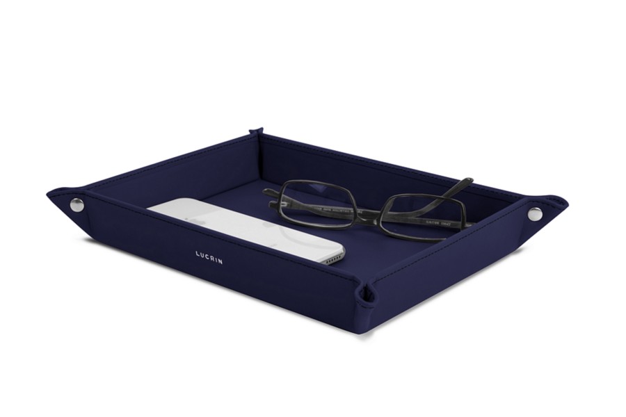 長方形小物入れ Lサイズ(21.5 x 15.5 x 2.5 cm) - Navy Blue - Smooth Leather