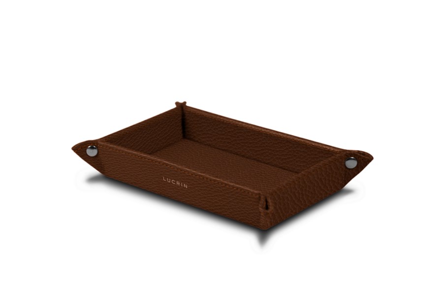 Lucrinが提供する最小サイズの長方形小物入れ。小さめのサイズは、寝る前に外したアクセサリーやポケットに入れたままの小銭などのちょっとしたものを収納するのに大変便利です。レザーカラーやレザータイプ、刻印、糸色など、様々なカスタマイズオプションをお選びいただくことで、大切な方への美しいギフトとしても最適のアイテムです。