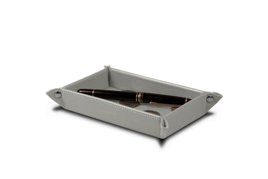 Lucrinが提供する最小サイズの長方形小物入れ。小さめのサイズは、寝る前に外したアクセサリーやポケットに入れたままの小銭などのちょっとしたものを収納するのに大変便利です。レザーカラーやレザータイプ、刻印、糸色など、様々なカスタマイズオプションをお選びいただくことで、大切な方への美しいギフトとしても最適のアイテムです。